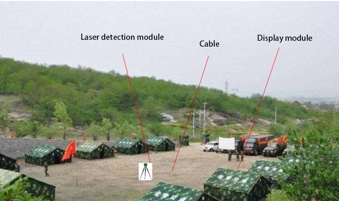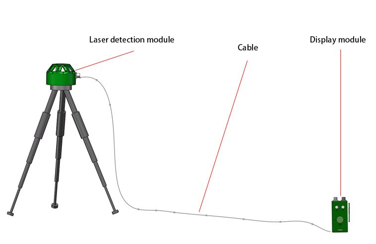 Laserilmaisin koostuu pääosin yhdestä laserilmaisinmoduulista ja yhdestä näyttömoduulista. Lasertunnistusmoduuli voidaan asentaa jalustan tai ajoneuvon alustan päälle, ja se voi saavuttaa 360° atsimuuttitunnistuksen. Näyttömoduulia käytetään lasertietojen näyttämiseen henkilöstölle.